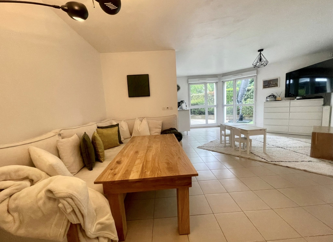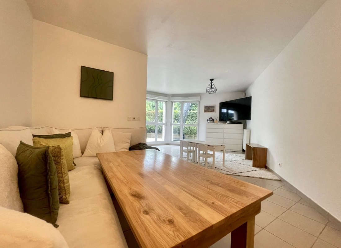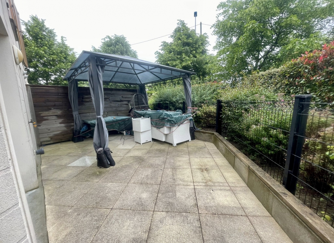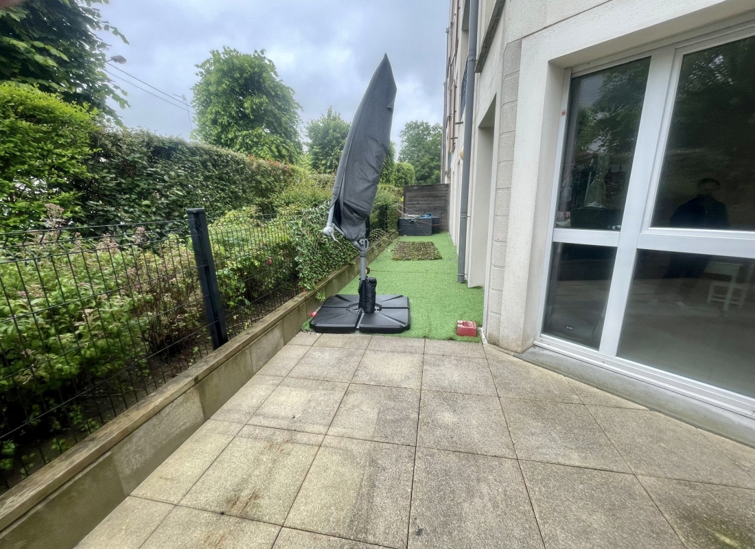 Terrasse exterieure avec accès depuis le sejour, la cuisine et les deux chambres.