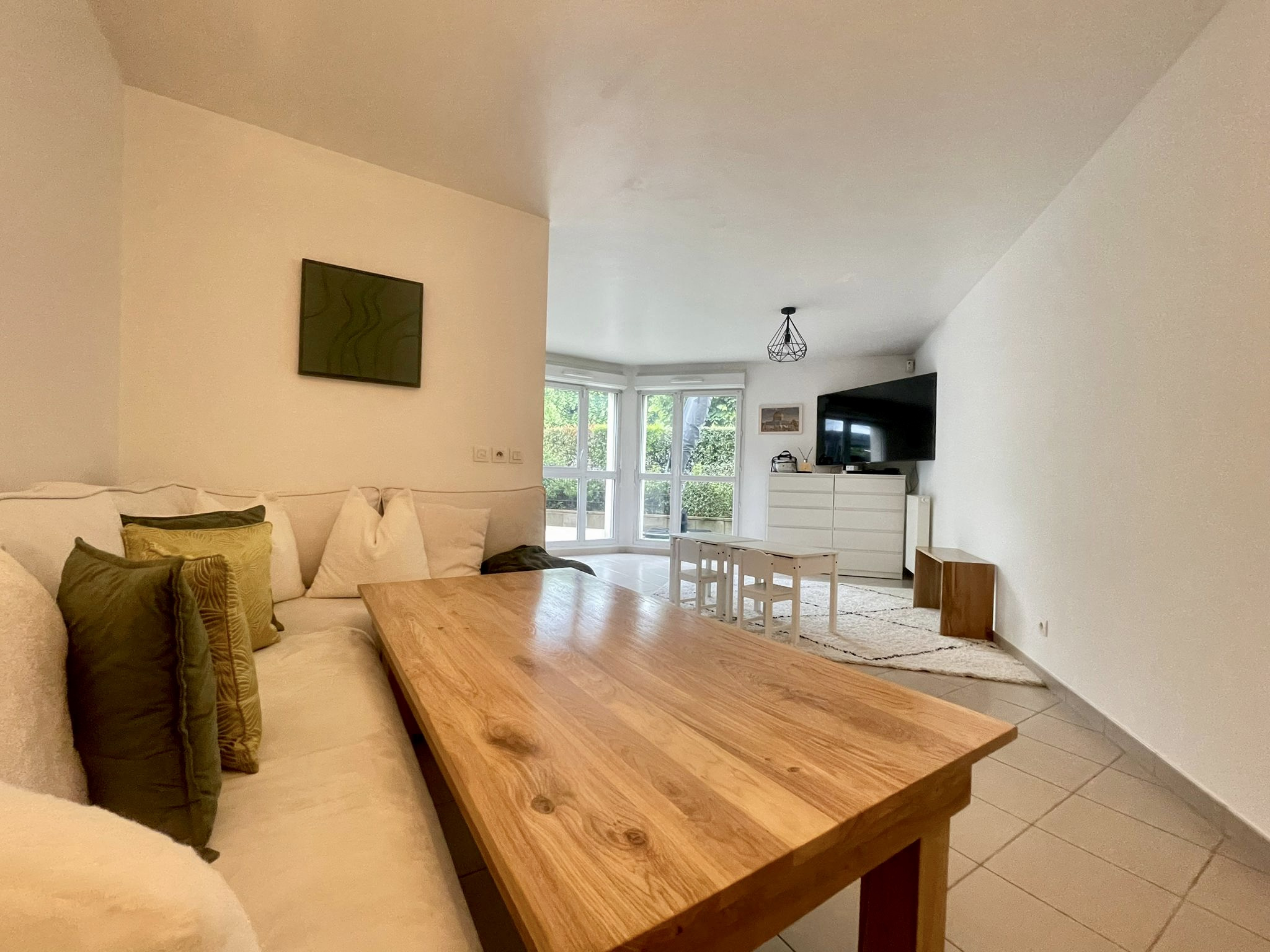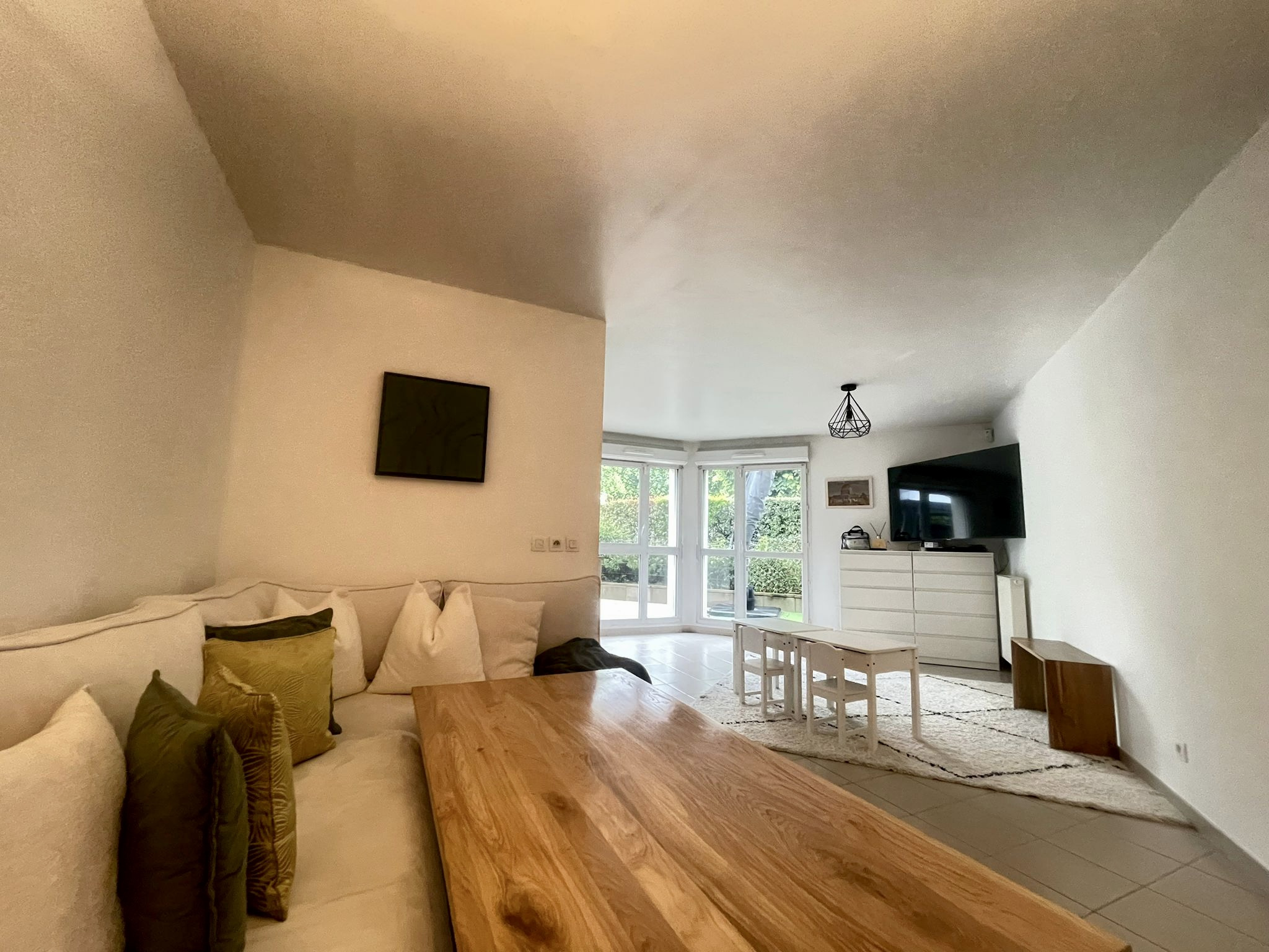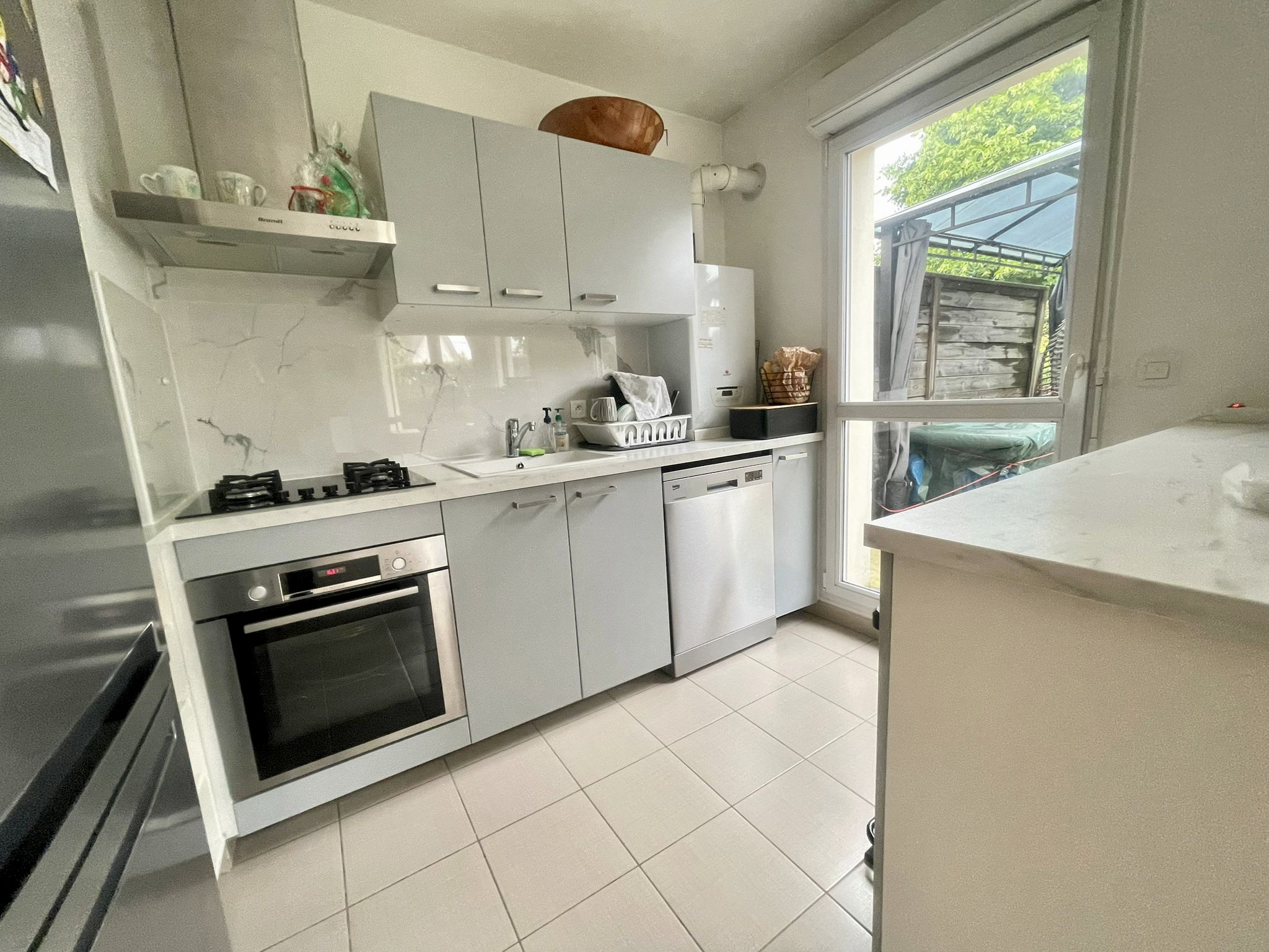 Terrasse exterieure avec accès depuis le sejour, la cuisine et les deux chambres.