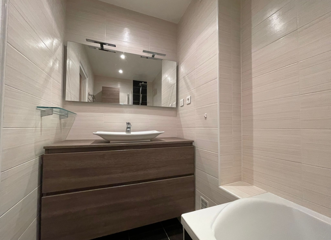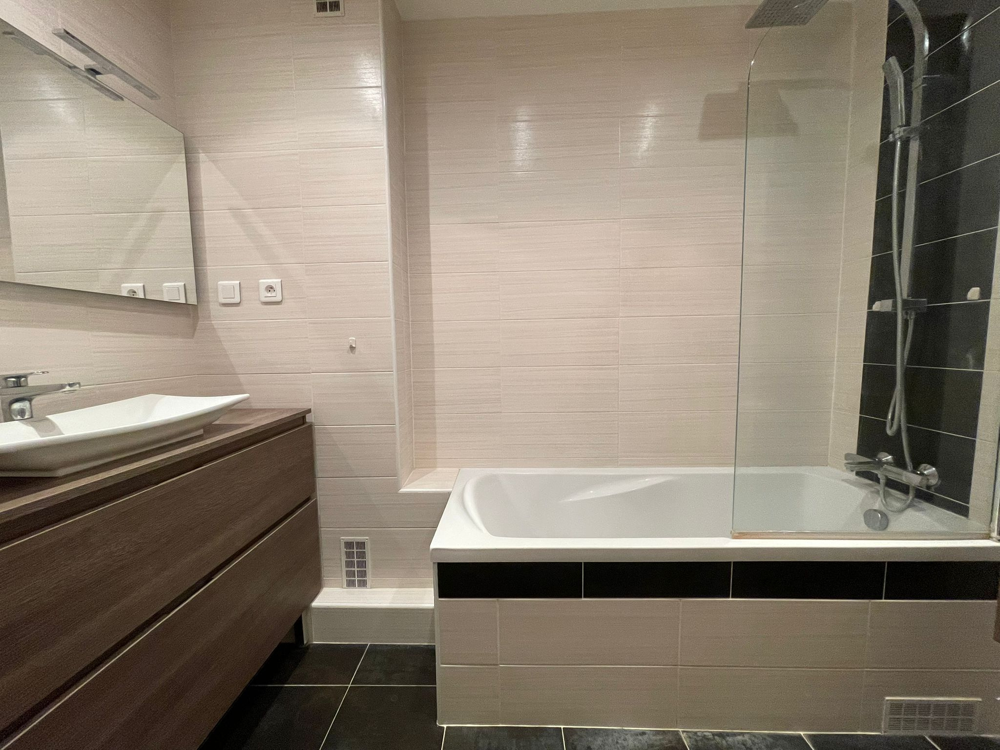 Une belle entrée avec placards, un séjour donnant sur loggia, une cuisine amenagée, deux chambres avec placards, une salle de bains, buanderie et wc.