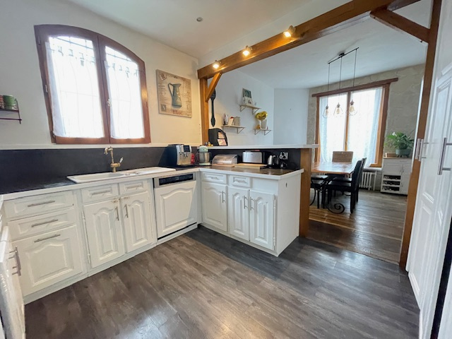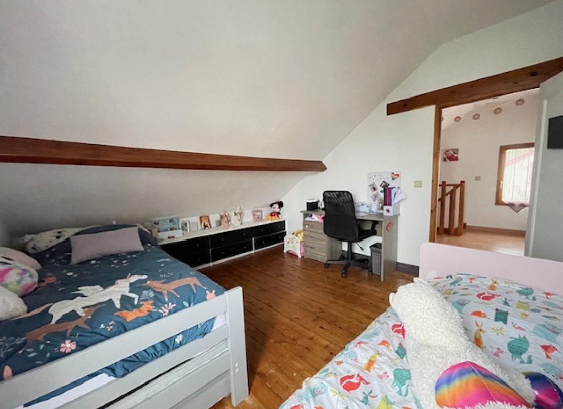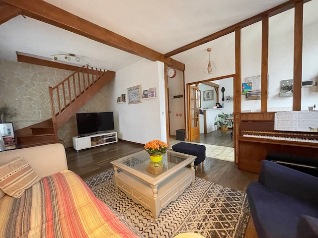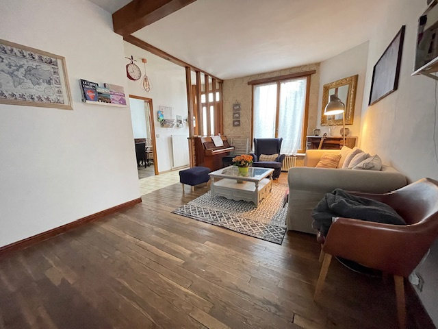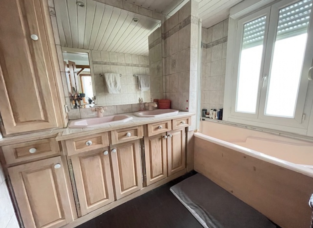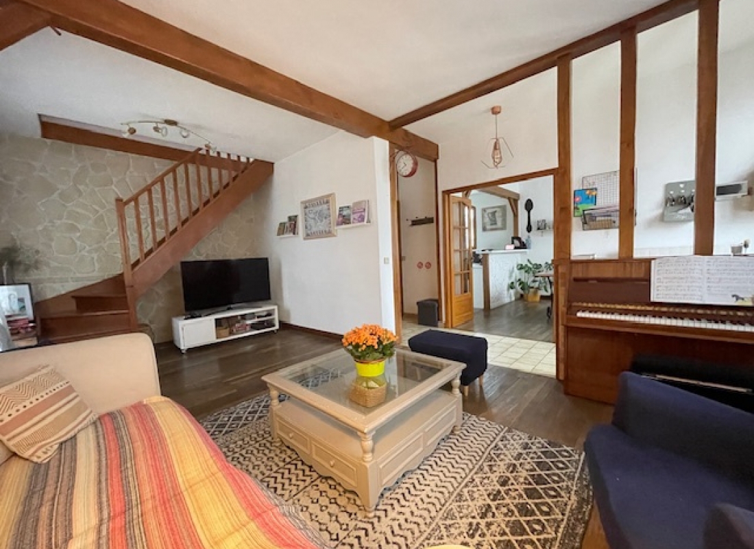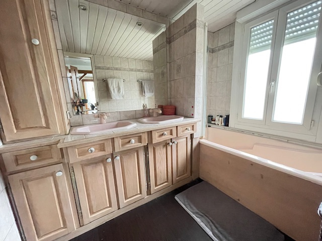 Au rez de chaussée, une entrée donant accès au séjour double, salle à manger, cuisine aménagée, wc , salle de bains.
