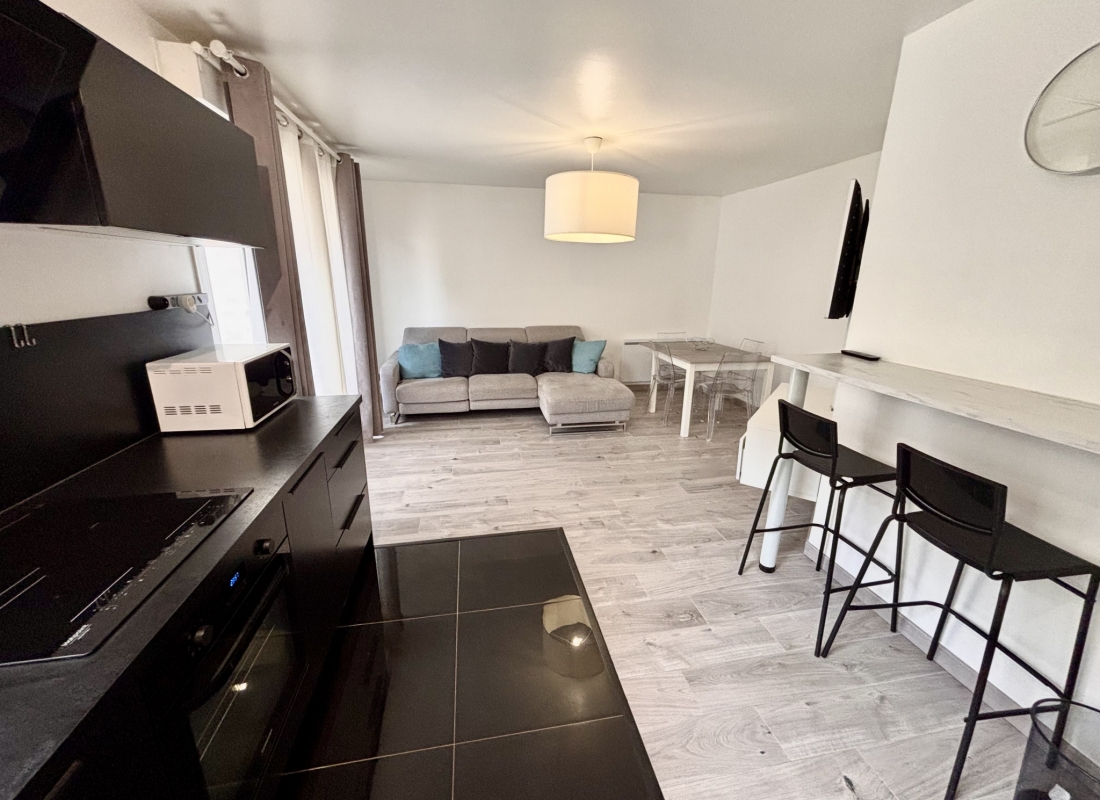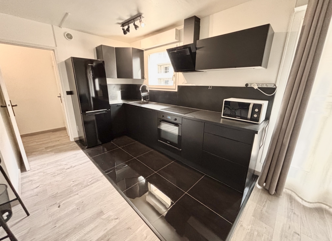 Appartement F3 SANS TRAVAUX au 1er étage, comprenant entrée avec placard, salon/ salle à manger avec accès terrasse de 12m2, cuisine ouverte aménagée et équipée, salle d'eau, WC et deux chambres.