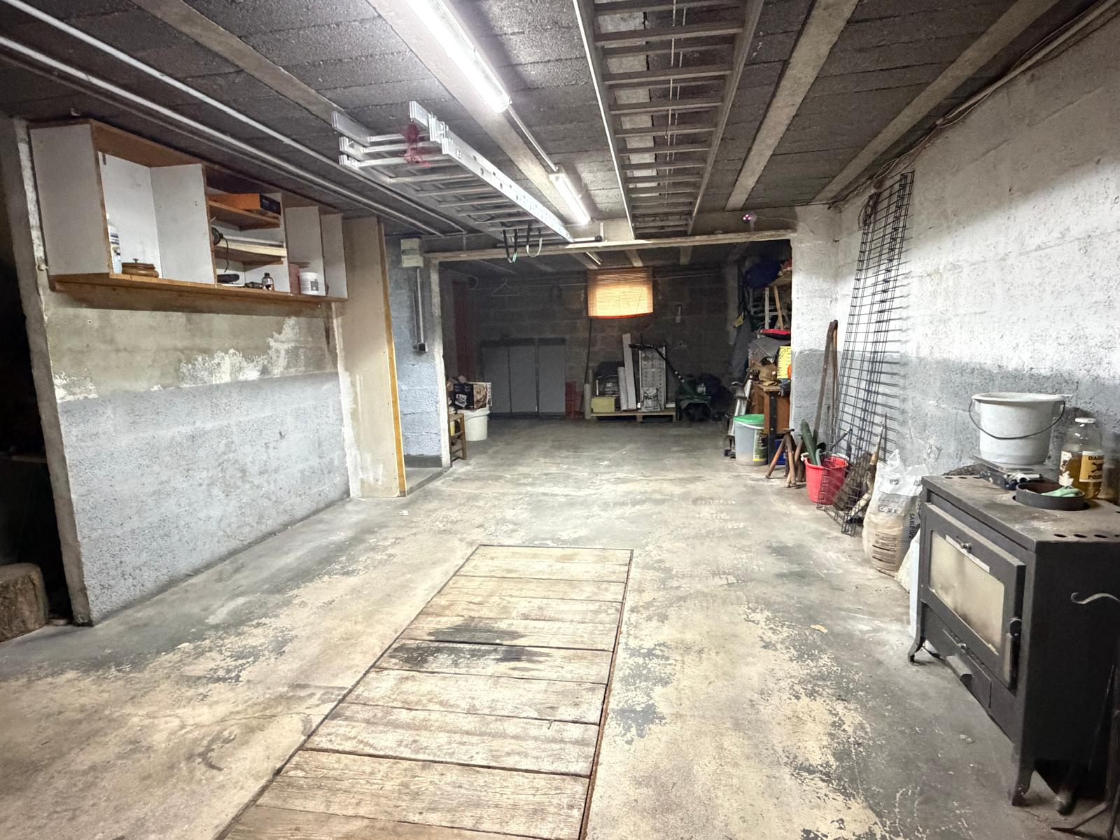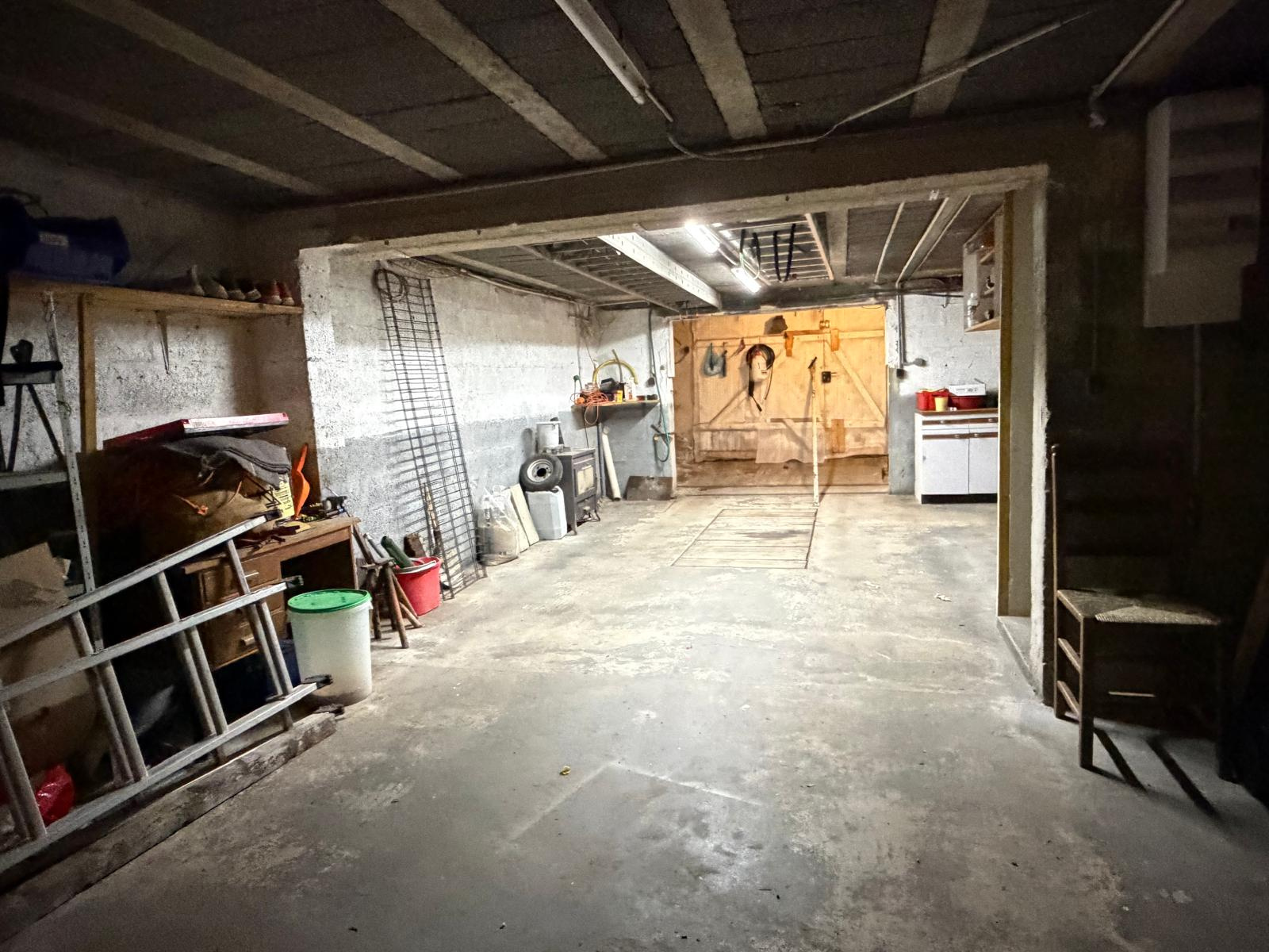 Sous sol total comprenant garage double, atelier et buanderie.